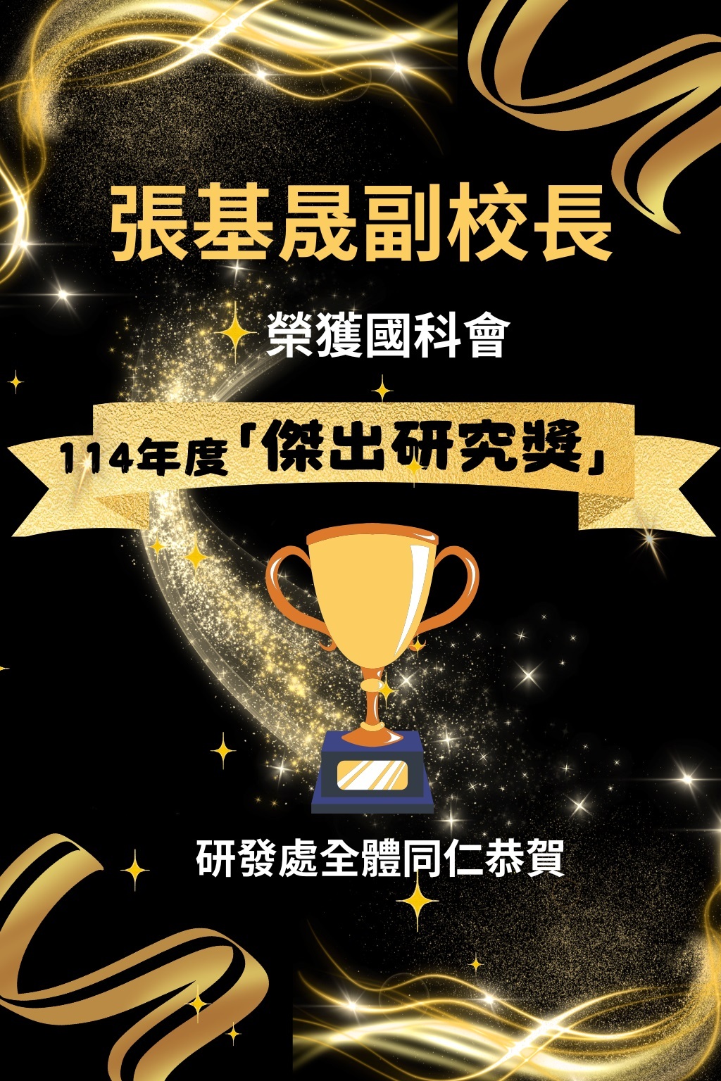 ~~ 恭賀 ~~ 張基晟副校長榮獲國科會114年度「傑出研究獎」~~
